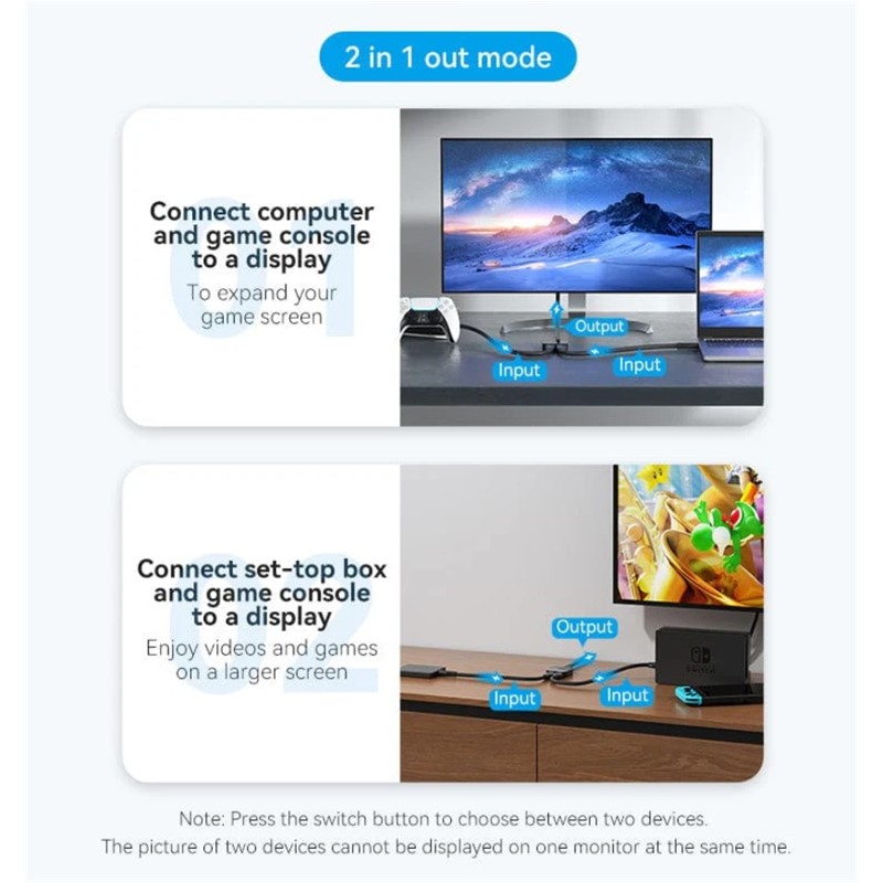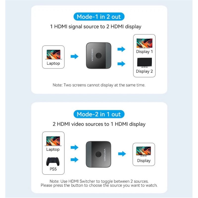 Dvosmjerni HDMI razdjelnik. Uključi i radi. Nije potrebno napajanje. Dvosmjerna pretvorba s prekidačem s jednom tipkom. Prijenos sinkronizacije zvuka i slike ...