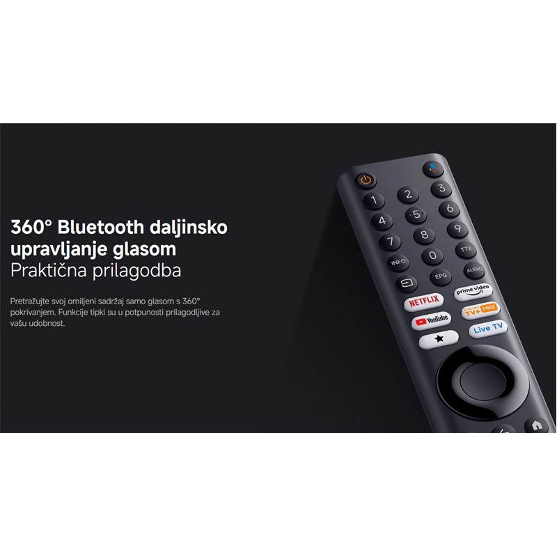 Dizajn s gotovo nevidljivim rubovima i visokim omjerom zaslona i tijela pruža impresivan prikaz preko cijelog zaslona, dok 360° Bluetooth daljinski upravljač s glasovnim upravljanjem osigurava potpunu slobodu i prilagodbu korištenja prema vašim navikama...